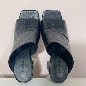 VINCE Nelda Cutout Croc-Effect Leather Mules Black 5M