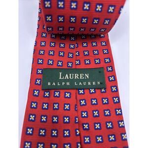 Add a touch of elegance to your wardrobe with this designer Ralph Lauren silk necktie. The tie features a beautiful red color with blue polka dot flowers, and is made from a luxurious silk blend that is sure to impress. Its adjustable design ensures a comfortable fit, while the tie-on attachment type adds a classic touch to your outfit.