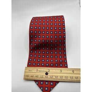 Ralph Lauren Silk Necktie Hand Made USA Red With Blue Dot Flowers Polo Tie 56”