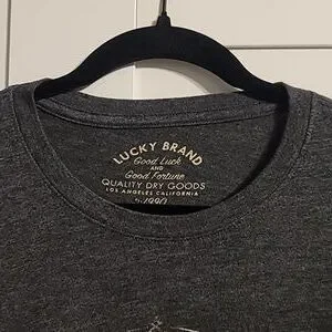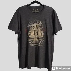 Lucky Brand T-Shirt Tee Men's Large Charcoal Gray Short Sleeve Spades Casual