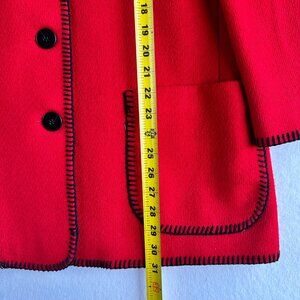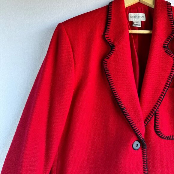 Vintage Nordstrom Women Blazer Medium Red Wool Black Button Stitched Preppy Chic
