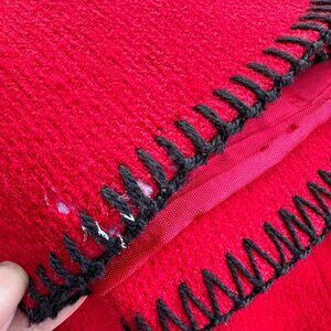 • Vintage Nordstrom Women Blazer Medium Red Wool Black Button Stitched Preppy Chic