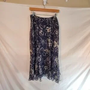 Vintage Lauren Ralph Lauren Women's 10 Silk Lined Floral Flare Midi Skirt New. 29" Waist. 36 inches long.