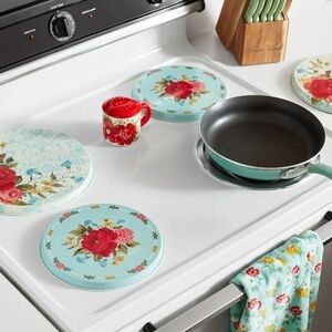 🎁 New The Pioneer Woman Sweet Rose Stove Burner Covers, Qty 4, Red, White Red