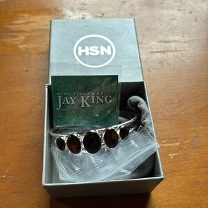Mine Finds by Jay King marked sterling silver Baltic amber graduated size oval cabochon adjustable cuff bracelet in original packaging. See photos for details. Millions of years in the making piece of nature in never worn condition
