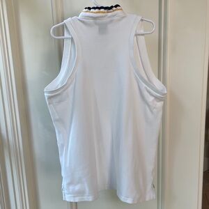 Pique knit tank in very good condition with two-tone, feminine ruffle collar. 98% cotton, 2% elastane.