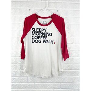 Chaser Shirt Womens XL 'Sleepy Morning Coffee Dog Walk' Raglan Tee