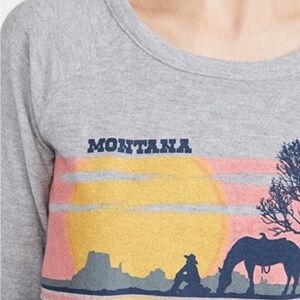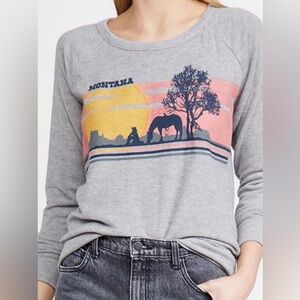 New Chaser Brand Montana Graphic LS Lightweight Gray Sweatshirt Size Small $88