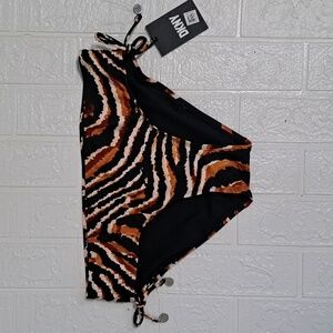 DKNY Women's Printed Side Tie Bikini Bottom Swimsuit in Brown/Black