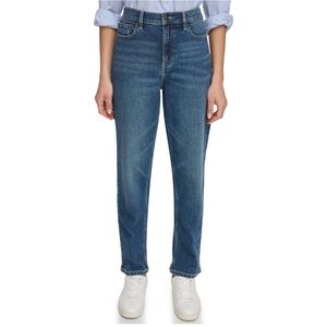 Styled in a straight leg silhouette with a high-rise waist (sits at or above navel), these jeans are made from a cotton stretch blend for easy, comfortable wear. Designed with a zip fly and a top button closure. Features classic 5-pocket styling, iconic omega stitching and finished with a Calvin Klein patch at the back waist. Pair with classic button down and heels for a a chic & modern look or CK logo tees for a casual, weekend look. Sold online and select Sam's Clubs across the nation. Machine washable. Care for your denim sustainably - wash less, save water, look better for longer.