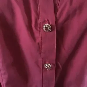 HOST PICK- 7TH AVENUE- NEW YORK & CO. FITTED BUTTON DOWN TOP WITH DECORATIVE STONE BUTTONS ON FRONT AND SLEEVES & EXTRA BUTTON/ SIZE MEDIUM/ NWT