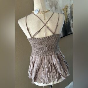 Lace peplum crochet cami top in mocha