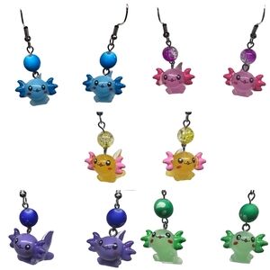 Cute Green Axolotl Earrings - Handmade - Hypoallergenic (Dangle w/ hook)