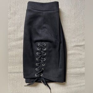 Black Suede Skirt. Did not come with a tag but it fits as a small. Never worn. No stains or rips.