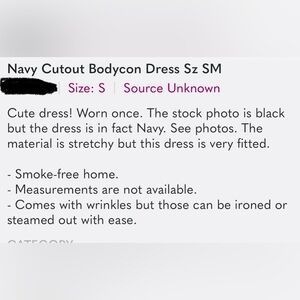 Navy Cutout Bodycon Dress Sz SM