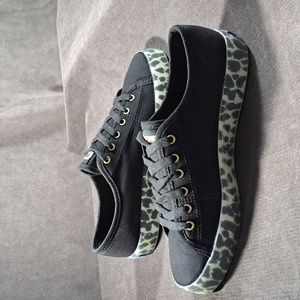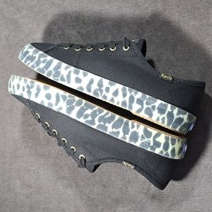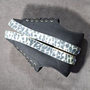 Keds Kickstart Canvas Black Leopard Foxing Lace Up Sneakers WF64735 NWOT US 6