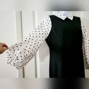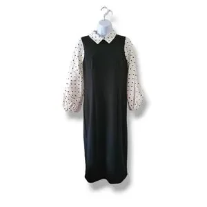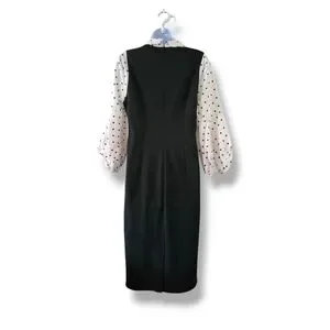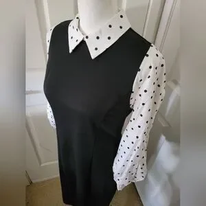 New York & Co | Black/White Polka Dot Puff Sleeve Midi Sheath Dress (SIZE M)