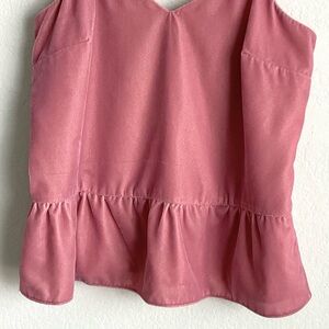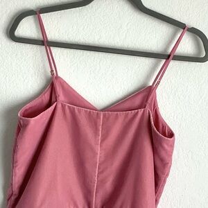 Great condition spaghetti strap top in a plush velvet. Fully lined, with peplum bottom and slips on. Has a blemish line in the velvet across the front as pictured. Adjustable straps.