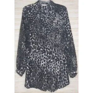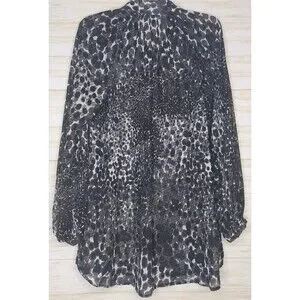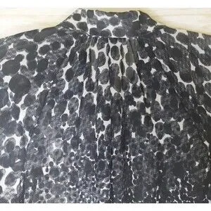 Cabi Womens Sheer Blouse Med. Black White Animal Print Button Front Long Sleeve