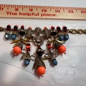 J CREW Coral and Blue Beads with Crystals 18-20 in Statement Necklace