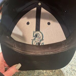 Team MLB Seattle Mariners adjustable, blue, baseball hat. Embroidered logo on front and Team MLB on side. OC Sports. Sweat band shows wear… see photos.