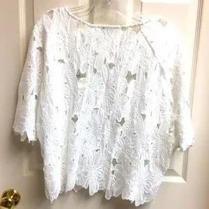 ‘NWT’ FLORAL CUT-OUT WHITE TOP