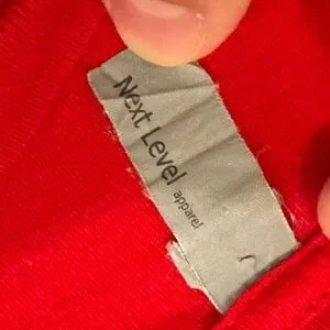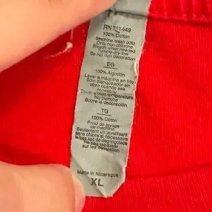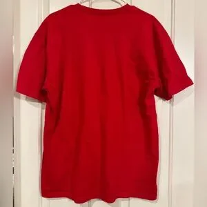 Red t-shirt with white lettering