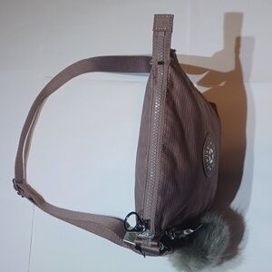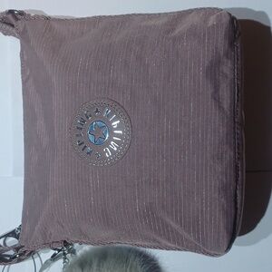 NWT Kipling Purse with grey Kipling monkey key chain. The color is Mink Glam Shimmer. Carry your effects around in eye-catching style with this trendy crossbody bag from Kipling.