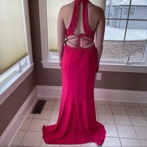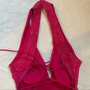 Beaded Barbie Pink Floor Length Formal Gown Prom Homecoming Dress Hot Pink
