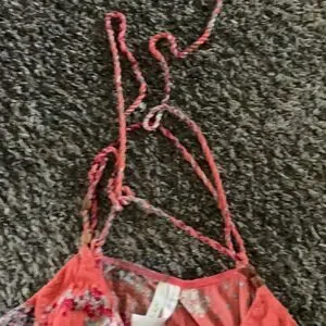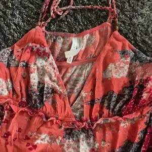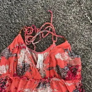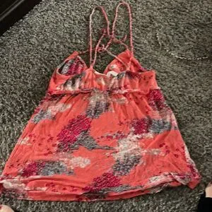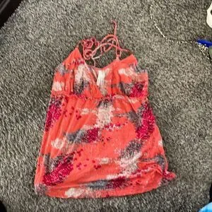 Coral color V-neck Ties around neck Also has straps Pit to pit is approximately 15 Length is approximately 22 In excellent used condition Smoke free, pet loving home Thanks for looking