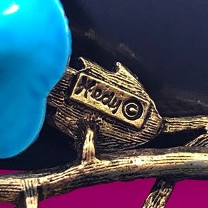 1960’s enameled blue daisy brooch marked Hedy followed by the copyright symbol. Hedy is the hallmark for the jewelry produced by the Hedison Manufacturing Company of Providence, RI. It was founded in 1909 by Harry D. Hedison, Sr. They were known for their Christmas designs and enamel jewelry.