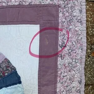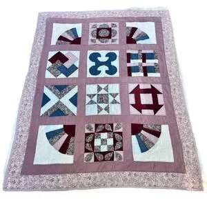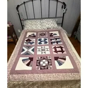 Vintage Handmade Quilt 66x52” Sampler Fan Pattern Purple Blue Coverlet Throw RV