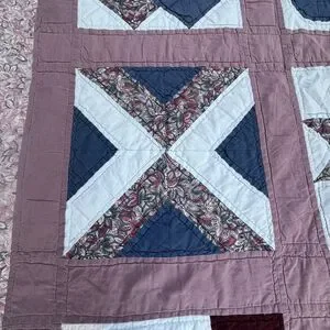 Vintage Handmade Quilt 66X 52” Sampler Fan Pattern Purple Blue Coverlet Throw RV Van