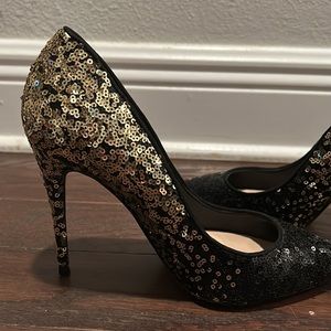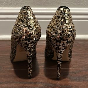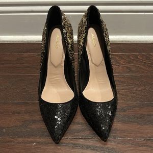 ALDO Black Gold Sequins Heels Pumps Size 7.5
