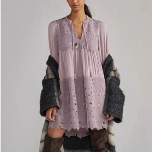 Anthropologie lilac lace midi dress