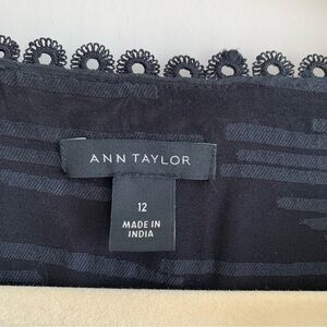 This is a roomy dress from Ann Taylor lightly used. I think I wore it once to church. It is a dark navy blue color and has some pretty details on the sleeves. Easily can be cinched in with a belt. Lined. 36 inches in length. The pit-to-pit is 23.5”.
