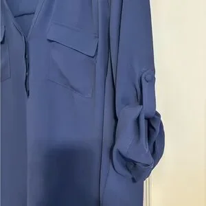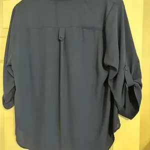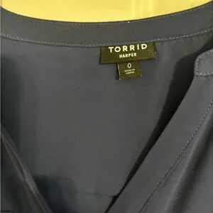 Navy Blue Torrid Semi-Sheer Roll-Tab Sleeve Blouse, Size 0.