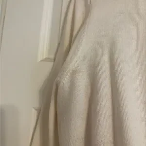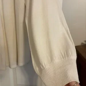 Ivory lightweight sweater from Style & Co. Good used condition, was a favorite of mine but doesn’t fit anymore. A couple of spots (see photos), and some light pilling. Balloon sleeves, mock-neck with keyhole cutout right below collar. Beautiful, very feminine. Great with a tweed skirt and a statement belt.