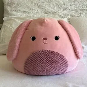 Squishmallow pink 16 inch Bop the Bunny Easter Squad! In perfect condition, no stains or rips. White cotton tail fuzzy belly squish.