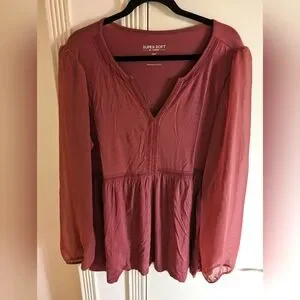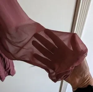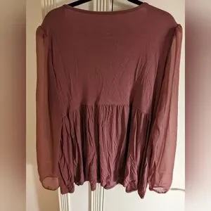 torrid super soft knit blouse with sheer sleeves. color is a dusty rose/mauve. not quite pink, not quite purple. perfect condition