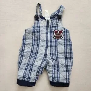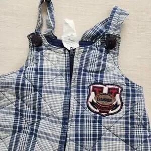 Vintage Football Plaid Quilted Overalls 0-3 months
