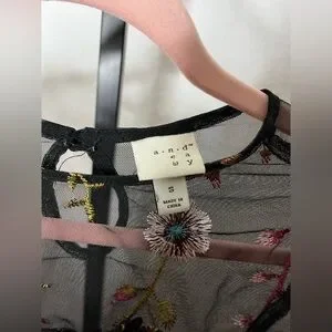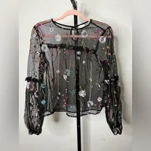 A New Day Floral Embroidered See-Though Long Sleeve Top Size Small