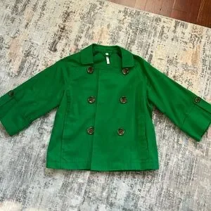 Old Navy Women's Size Small Green Pea Coat Jacket with 3/4 Cuff Button Sleeves