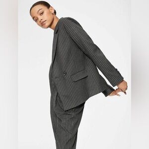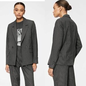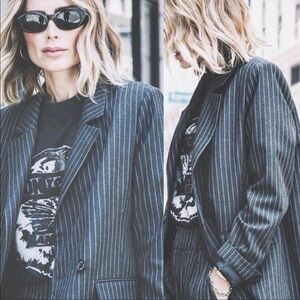 NWT Anine Bing Becky Pinstriped Single-Button Blazer