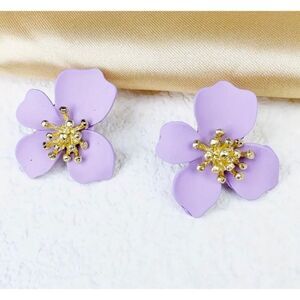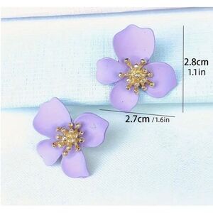 💜 Betsey Johnson new violet flower stud earrings. Pretty petals with a gold center perfect for every occasion. Exact same size as a quarter with hypoallergenic posts & nickel free 💜