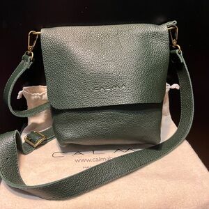 New Calma Forrest Green Pebbled Leather Purse Handmade in Spain NWOT