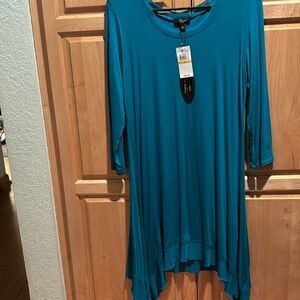 97% viscose 3% spandex and the mesh is 95% nylon 5% spandex beautiful shark bite style dress. See pictures for in-depth detail new with tags NWT.