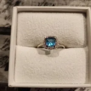 14k White Gold Ladies Blue & Diamond Ring ring.