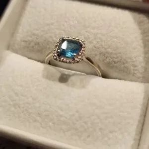 14k White Gold Ladies Blue & Diamond Ring ring