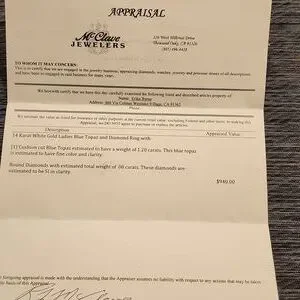 see purchase receipt and appraisal.
